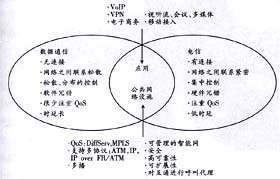 NGN是融合網(wǎng)絡(luò)。數(shù)據(jù)網(wǎng)與電信網(wǎng)曾是兩個有著不同特性的網(wǎng)絡(luò),它們的融合將帶來一系列新的業(yè)務(wù),并對網(wǎng)絡(luò)平臺提出新的要求(見圖1)。因此,NGN的網(wǎng)絡(luò)功能結(jié)構(gòu)如何設(shè)定是我們要關(guān)注的重點(diǎn)。