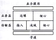 業(yè)務(wù)層的基本功能是在由傳送層提供的“電路”中把負(fù)荷進(jìn)行“整形”并進(jìn)行信息的交換,其目標(biāo)是提升每一個比特的價值。業(yè)務(wù)層被橫切為邊緣和核心兩大部分,界線是10萬分組/s。在業(yè)務(wù)層,數(shù)據(jù)分組被單獨(dú)處理或者作為“流”(與特定用戶或應(yīng)用相關(guān)的分組串)來處理,老的技術(shù)包括幀中繼和ATM,新的技術(shù)MPLS有可能成為ATM的替代技術(shù)。