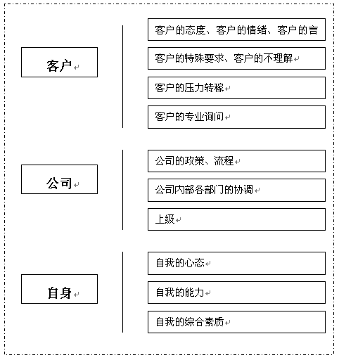 對(duì)于一個(gè)客戶(hù)服務(wù)中心來(lái)說(shuō),壓力主要來(lái)自三方面:客戶(hù)、公司、自身!