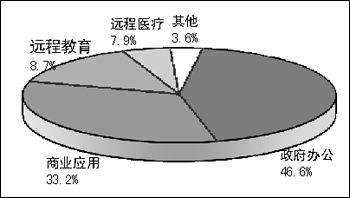 我國(guó)的遠(yuǎn)程教育和遠(yuǎn)程醫(yī)療尚處于發(fā)展初期,所占份額分別是8.7%和7.9%。這反映視頻會(huì)議系統(tǒng)在遠(yuǎn)程教育、遠(yuǎn)程醫(yī)療等方面建設(shè)力度還不夠大。不過(guò),據(jù)研究表明,這兩個(gè)領(lǐng)域的應(yīng)用近年來(lái)呈現(xiàn)出蓬勃發(fā)展的勢(shì)頭。