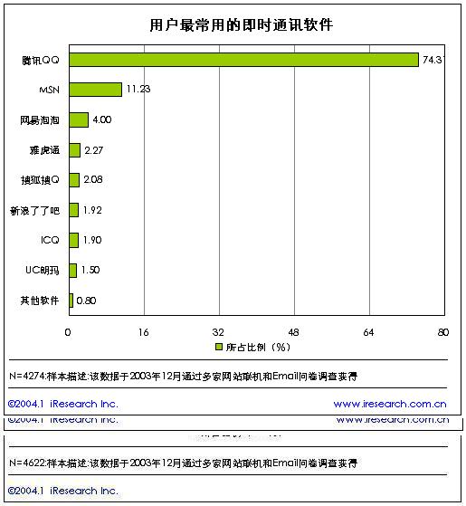 新迎來的2004年對(duì)于中國(guó)的互聯(lián)網(wǎng)是充滿無限憧憬的一年,互聯(lián)網(wǎng)用戶打到了近8000萬,在繼短信、網(wǎng)絡(luò)廣告、網(wǎng)絡(luò)游戲成為中國(guó)網(wǎng)絡(luò)企業(yè)發(fā)家致富的法寶之后,即時(shí)通訊又將是一塊無限誘惑的領(lǐng)地,成為門戶網(wǎng)站、電信運(yùn)營(yíng)商展開廝殺的新大陸。