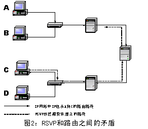 RSVP中引入每流狀態(tài)(per-flow state)的概念,對(duì)于數(shù)據(jù)通信和實(shí)時(shí)應(yīng)用通信而言,IP網(wǎng)絡(luò)同時(shí)扮演了面向無連接和面向連接網(wǎng)絡(luò)的兩個(gè)不同角色,提供兩種功能,這與其簡化設(shè)計(jì)原則相抵觸。