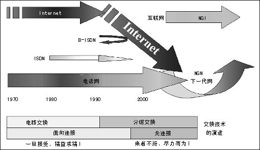 傳統(tǒng)電信網(wǎng)和互聯(lián)網(wǎng)都面臨著挑戰(zhàn),基于電話業(yè)務(wù)設(shè)計(jì)的電路交換網(wǎng)不能靈活適應(yīng)帶寬各異的數(shù)據(jù)業(yè)務(wù)的發(fā)展。專(zhuān)為數(shù)據(jù)業(yè)務(wù)設(shè)計(jì)的互聯(lián)網(wǎng)則存在著安全性、可管理性、商業(yè)模式等問(wèn)題的困擾。NGI對(duì)目前電信網(wǎng)的主要盈利業(yè)務(wù)語(yǔ)音的質(zhì)量保證以及對(duì)電信網(wǎng)增長(zhǎng)空間很大的業(yè)務(wù)(移動(dòng))關(guān)注不夠。NGI可能達(dá)到的目標(biāo)不能滿(mǎn)足電信界的需要。因此,在NGI之后ITU和ETSI等提出了更高的目標(biāo)——NGN,這就是NGN的提出背景。信息產(chǎn)業(yè)部電信研究院科技委副主任委員雷震洲認(rèn)為,兩大亮點(diǎn)點(diǎn)燃了NGN:一是數(shù)據(jù)超過(guò)語(yǔ)音的信息需求,全球互聯(lián)網(wǎng)用戶(hù)目前已逾7億,全世界在網(wǎng)上傳送的以IP為代表的數(shù)據(jù)業(yè)務(wù)量已經(jīng)超過(guò)語(yǔ)音業(yè)務(wù)量;二是移動(dòng)超過(guò)固定的個(gè)性化需求,全球移動(dòng)用戶(hù)已經(jīng)超過(guò)13億,近100個(gè)國(guó)家的移動(dòng)用戶(hù)數(shù)已經(jīng)超過(guò)固定用戶(hù)數(shù),我國(guó)在2003年10月移動(dòng)用戶(hù)也超過(guò)了固定用戶(hù)數(shù)。