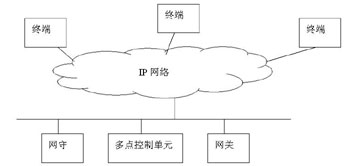基于H.323的軟件視頻會議系統(tǒng)由相應的協(xié)議族提供支持,使得這樣的系統(tǒng)能夠有很強的適應性、兼容性。H.323建議的多媒體會議系統(tǒng)不是基于客戶服務器結構,而是基于傳統(tǒng)的電話呼叫網(wǎng)絡模式。H.323為基于網(wǎng)絡的通信協(xié)議定義了4個主要的組件:終端(Terminal)、網(wǎng)關(Gateway)、網(wǎng)守(Gatekeeper)和多點控制單元(MCU);就負浣Y構結構如圖: