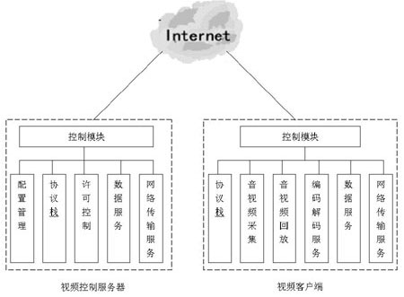 視頻會議系統(tǒng)一般由視頻控制服務器、會議客戶端軟件以及IP傳輸網(wǎng)絡系統(tǒng)組成(如圖1所示)。