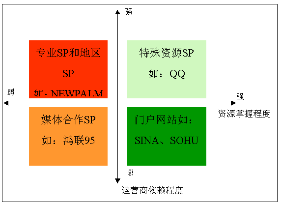 通常有風險資本注入,主要通過本地接入獲得運營商推廣支持而產(chǎn)生收入,大多具20個省以上短信接入并在當?shù)卦O(shè)有市場人員,其它地區(qū)采用全網(wǎng)接入發(fā)展業(yè)務(wù),與運營商關(guān)系密切,業(yè)務(wù)主要以娛樂服務(wù)為主:華友、掌中萬維、靈通、空中網(wǎng);