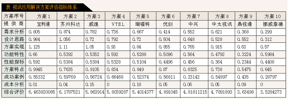 我們從20多家視訊解決方案中篩選出10個整體設計或產(chǎn)品技術方面較具特色的解決方案,它們是寶利通、蘇州科達、威速、VTEL、瑞福特、優(yōu)創(chuàng)、中興、中太視訊、鼎視通、挪威泰德。在方案評析過程中最深切的感受是,解決方案與產(chǎn)品功能介紹之間的區(qū)別,總體感覺技術提供商們對于產(chǎn)品技術的把握能力較強,而對于如何緊密地圍繞用戶的業(yè)務特點、行業(yè)特點來進行整體方案設計上功力不足。有個別廠商雖然擁有世界領先水平的產(chǎn)品與技術,但可惜的是此次卻未能提供一個較有說服力的完整的解決方案。
