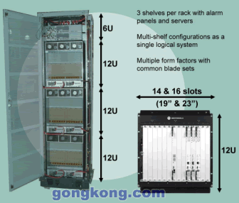 從機械結構的角度看,一個關鍵技術與電信機柜有關,一般而言,一個機柜裝載三個機箱和瘦服務器與報警面板,12U機箱具有14個或16個ATCA槽,如圖7所示,這些機箱可以相互連接并作為一個邏輯單元加以管理。