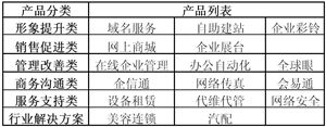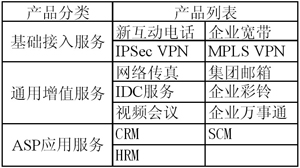 表1 中國網(wǎng)通“寬帶商務(wù)”主要產(chǎn)品