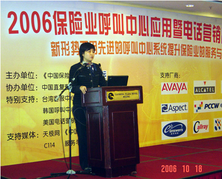 。。2006年10月18日,2006保險業(yè)呼叫中心應用暨電話營銷高峰研討會在北京天鴻科園大酒店隆重召開,以下是K1主題演講實錄: