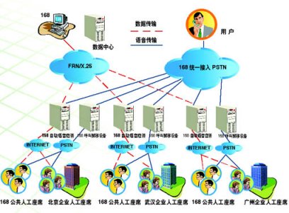 2、分布式接入服務功能:"企業(yè)客戶服務系統(tǒng)"為企業(yè)分布式的人工座席提供接入服務。當某個城市的消費者在使用168電話中自動語音應答功能時,只要按"0"號鍵,電話就會被轉到企業(yè)在的當?shù)胤⻊杖藛T座席上,由專業(yè)人員來提供服務支持。此種功能適合于在多個城市設立人工座席的企業(yè)用戶。