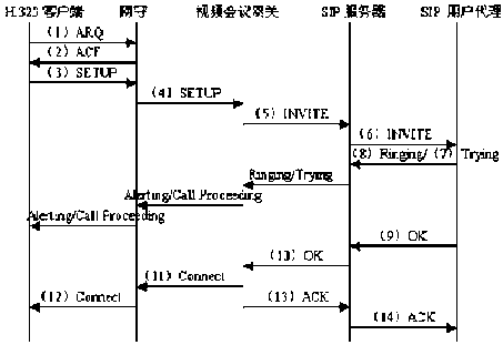 為了更好的說(shuō)明視頻會(huì)議網(wǎng)關(guān)在跨協(xié)議會(huì)議系統(tǒng)中的作用和工作流程,我們以一個(gè)由H.323客戶(hù)終端發(fā)起的會(huì)議請(qǐng)求為例來(lái)描述視頻會(huì)議網(wǎng)關(guān)對(duì)兩種協(xié)議信令消息的處理過(guò)程(如圖2所示)。