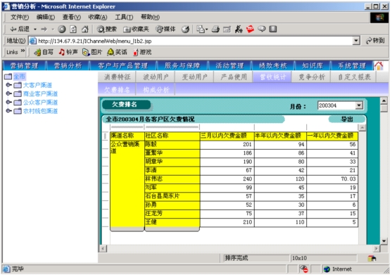 本系統(tǒng)通過對本地計費帳務系統(tǒng)、網(wǎng)間結(jié)算系統(tǒng)、1000號客戶服務系統(tǒng)、“九七工程”系統(tǒng)、資源管理系統(tǒng)的動態(tài)相關(guān)數(shù)據(jù)的提取,按日(天)記錄并分析開展營銷服務工作所需的客戶基本資料、客戶關(guān)系資料、客戶收入信息、客戶消費行為信息、客戶變動信息、客戶障礙信息、客戶投訴信息、客戶競爭動態(tài)信息等支撐信息,指導各類客戶經(jīng)理開展有針對性營銷服務工作。