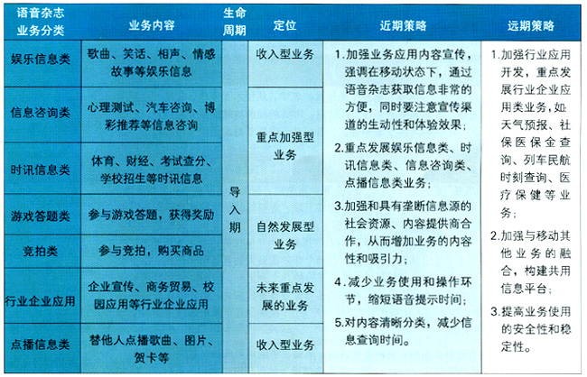 總之,借鑒國(guó)際經(jīng)驗(yàn),考慮本國(guó)實(shí)情,筆者認(rèn)為,今后國(guó)內(nèi)IVR的業(yè)務(wù)結(jié)構(gòu)將會(huì)逐步在發(fā)展中得到改善,雖然說針對(duì)個(gè)人提供的語(yǔ)音娛樂類、點(diǎn)播類業(yè)務(wù)在近期仍會(huì)占主體,但信息咨詢類、行業(yè)應(yīng)用類和數(shù)據(jù)類業(yè)務(wù)的比例將會(huì)逐步提高,而形式、內(nèi)容相對(duì)空泛的游戲答題類業(yè)務(wù)在經(jīng)過近兩年的繁榮期后,占比和規(guī)模都將會(huì)逐步回落到一個(gè)穩(wěn)定的水平。