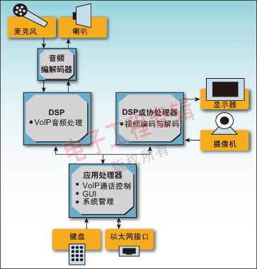 當(dāng)今應(yīng)用處理器的處理能力的增加使得我們能使用先進(jìn)的操作系統(tǒng)環(huán)境,例如嵌入式Linux來(lái)有效地將V2IP系統(tǒng)中需要的控制和媒體處理進(jìn)行劃分。這反過(guò)來(lái)又使得使用單一處理器和工具鏈的軟件開(kāi)發(fā)更加簡(jiǎn)單,由于減少了一個(gè)或更多的昂貴DSP而降低了成本。