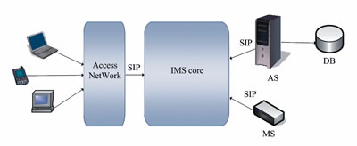 IMS網(wǎng)絡(luò)選擇SIP協(xié)議作為呼叫控制協(xié)議,選擇Diameter協(xié)議為運(yùn)行AAA(認(rèn)證、授權(quán)、計(jì)費(fèi))功能的協(xié)議,在網(wǎng)絡(luò)安全方面采用IPSec技術(shù)和TLS安全傳送協(xié)議。IMS體系結(jié)構(gòu)包括應(yīng)用層平面、控制層平面、媒體層平面3個(gè)部分。應(yīng)用層包括了多種類型的應(yīng)用服務(wù)器,這些主持和執(zhí)行服務(wù)的SIP實(shí)體,可操作在SIP代理模式、SIPUA模式和SIPB2BUA模式下。應(yīng)用層為用戶提供多媒體業(yè)務(wù),它獨(dú)立于網(wǎng)絡(luò)的接入層、核心控制層存在,能保證業(yè)務(wù)開發(fā)和提供的獨(dú)立性?刂茖犹幚頃捫帕,由不同的功能實(shí)體來處理信令流,x-CSCF(呼叫會話控制功能)、HSS(歸屬用戶服務(wù)器)、MGCF(媒體網(wǎng)關(guān)控制功能)、MRFC(媒體資源功能控制器)等實(shí)體協(xié)同操作,提供用戶的統(tǒng)一認(rèn)證、呼叫控制、策略管理、漫游和計(jì)費(fèi)等功能。媒體層作為一個(gè)媒體宣告服務(wù)器,直接在用戶之間、用戶和IMS媒體功能(如媒體資源控制處理器MRFP)之間傳輸媒體流。