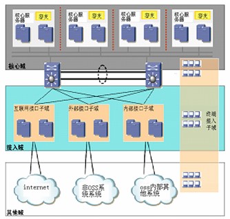 OSS管理者在保證及時準確的提供信息服務的基礎上,應該按不同的安全級別研究對安全域進行劃分,確認那些為核心子域,那些為接入域,那些為其他域。通過對不同的安全域進行不同的安全策略劃分,保證如上的安全域所享受的安全級別是不同的。圖1顯示,核心域、接入域和其他域是第次接入的,向下訪問可以透明傳輸,而向上的訪問就必須設定相應的訪問控制。