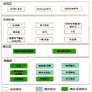 盡管如此,目前的主流產(chǎn)品仍然存在一定程度的不足,主要包括:機(jī)頂盒成本偏高,制約大規(guī)模業(yè)務(wù)的運(yùn)營(yíng)開(kāi)展;采用私有封閉接口協(xié)議,無(wú)法與第三方廠(chǎng)商IPTV系統(tǒng)對(duì)接,不能滿(mǎn)足“一盒在手,全網(wǎng)通行”的業(yè)務(wù)需求;USB、游戲桿、無(wú)線(xiàn)鍵盤(pán)、WLAN、硬盤(pán)等外設(shè)接口的支持能力不足;機(jī)頂盒管理功能較弱,日志管理和上傳、在線(xiàn)升級(jí)版本更新、遠(yuǎn)程管理、在線(xiàn)監(jiān)控等方面功能有待進(jìn)一步提高;難以實(shí)現(xiàn)視頻編碼的平滑升級(jí),受限于機(jī)頂盒硬件配置,目前基于MPEG4的機(jī)頂盒很難平滑升級(jí)的支持H.264;業(yè)務(wù)支持能力有待進(jìn)一步擴(kuò)展,不能滿(mǎn)足開(kāi)展視頻通訊和高清、大型網(wǎng)絡(luò)游戲的業(yè)務(wù)需求;業(yè)務(wù)QoS保證機(jī)制不完善;系統(tǒng)安全性有待加強(qiáng),在設(shè)備安全性和內(nèi)容安全性方面考慮不足;不能提供高中低檔產(chǎn)品序列,不能滿(mǎn)足細(xì)分用戶(hù)的業(yè)務(wù)需求。