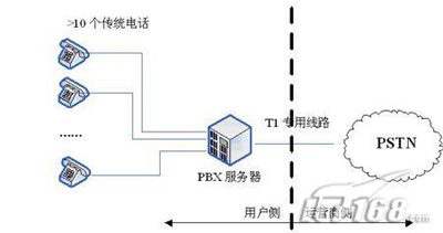 相反,在傳統(tǒng)的PBX或新興的IP-PBX中,這些功能模塊通常配置在用戶側(cè)的網(wǎng)絡(luò)元素上,而且通過一條或多條專用線路T1(傳統(tǒng)PBX)或DSL(新興PBX)連接到中心辦公室,用PSTN的連接。圖1說明了PBX和Centrex服務(wù)的區(qū)別。而且,DSL還能在相同的鏈路支持語音和數(shù)據(jù)的傳輸,而且維護(hù)鏈路的成本也遠(yuǎn)遠(yuǎn)小于維護(hù)T1所需的代價(jià)。另外,由于呼叫控制能夠在本地裝載,而IP-PBX能夠支持Internet連接,因此每23(T1-PRI)或24(T1-CAS)個(gè)電話終端就不再需要一條專用線路T1的支持了。(后續(xù)將進(jìn)一步說明)