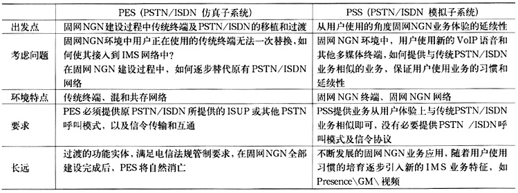 業(yè)務(wù)層的PSS和PES子系統(tǒng)針對不同的終端類型和業(yè)務(wù)需求而設(shè)計(jì)。使用PSS和PES主要目的是使寬窄帶域完全分離,即SIP用戶通過PSS子系統(tǒng)完成接入和業(yè)務(wù)提供,窄帶用戶通過PES子系統(tǒng)完成接入和業(yè)務(wù)提供。具體比較如表2所示。