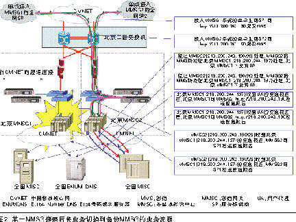 為驗(yàn)證基于IP尋址的彩信網(wǎng)關(guān)備份方案的現(xiàn)網(wǎng)可行性,2006年12月6日在北京MMSG進(jìn)行了容災(zāi)備份的測試。當(dāng)時(shí),北京MMSG1已經(jīng)割接入網(wǎng),承載空中網(wǎng)公司、Sina公司的業(yè)務(wù),北京MMSG2正在進(jìn)行測試,TOM公司進(jìn)行配合。