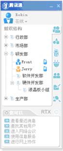 RTX的互聯(lián)功能:企業(yè)分支機構(gòu)互聯(lián);RTX企業(yè)互聯(lián),RTX用戶可以與其他RTX企業(yè)用戶互通;與普通QQ用戶互連。