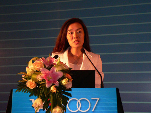 圖為NTTDoComo北京事務(wù)所對外業(yè)務(wù)高級經(jīng)理陳文雅作題為“日本3G應(yīng)用、運(yùn)營與挑戰(zhàn)”的演講。