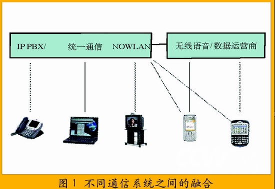拋開這些行業(yè)之間的差異性,不同的通信系統(tǒng)之間的確是從分離走向融合的狀態(tài)。如圖1所示,原有的電話系統(tǒng)是PBX、計(jì)算機(jī)系統(tǒng)是企業(yè)局域網(wǎng)而視頻通信也有專門的系統(tǒng)支持,移動通信更是自成系統(tǒng)。但是隨著技術(shù)的演進(jìn),語音、數(shù)據(jù)以及視頻都可以統(tǒng)一到IP平臺上來,甚至蜂窩通信也可以通過智能網(wǎng)以及軟件的方式和這種IP平臺整合到一起。從這個角度來說,融合通信對商業(yè)用戶是一種更節(jié)約資源的做法,避免資源的重復(fù)建設(shè);但是,這并不是設(shè)備供應(yīng)商都能看到的,主要原因有以下幾點(diǎn):一、企業(yè)采用VoIP的大趨勢使得設(shè)備商變成了軟件公司;二、IP電話雖然價(jià)格要比傳統(tǒng)電話高約25%,但是中低端產(chǎn)品發(fā)展較快;