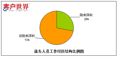 8.流失人員的工作經(jīng)歷結(jié)構(gòu)比例2(是否剛來(lái)深圳)