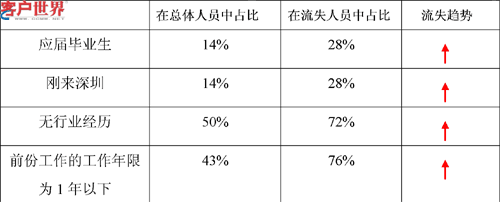 2、其中試用期內(nèi)的流失人數(shù)占了總流失人數(shù)的41.3%