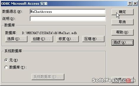 為使Mechat系統(tǒng)具有較高的運(yùn)行效率,我們將其添加數(shù)據(jù)庫(kù)支持,單擊“開始”/“設(shè)置”/“控制面板”,選擇“治理工具”/“數(shù)據(jù)源(ODBC)”,切換至“系統(tǒng)DSN”,單擊“添加”按鈕啟動(dòng)ODBC數(shù)據(jù)源添加向?qū),選擇“MicrosoftAccessDriver(*、mdb)”,然后在DSN屬性設(shè)置窗口設(shè)置數(shù)據(jù)源名稱為“MeChatAccess”,選擇數(shù)據(jù)庫(kù)文件為D:\MeChat\SysData\db目錄下的MeChat、mdb(如圖23)。設(shè)置完畢,單擊“確定”退出。
