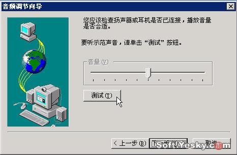 單擊“下一步”跳過Netmeeting服務(wù)器設(shè)置,此時(shí)向?qū)?huì)要求對(duì)計(jì)算機(jī)聲卡和麥克風(fēng)進(jìn)行測(cè)試,如圖5。