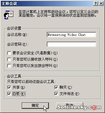 在Windows2000/XP中,Netmeeting在默認(rèn)情況下已經(jīng)安裝了,假如你的系統(tǒng)中沒有Netmeeting,那么你可以嘗試以“添加Windows組件”的形式安裝Netmeeting,此外,你還可以到微軟網(wǎng)站下載Netmeeting,網(wǎng)址是http://download、microsoft、com/download/netmeeting/Install/3、01/W9XNT4/CN/nm30、exe,版本為簡(jiǎn)體中文3、01版。Netmeeting安裝極為簡(jiǎn)單,只要一路單擊“下一步”就可以了,這里就不再贅述。