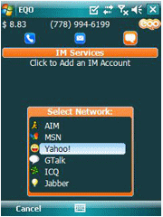 軟件的使用與Talkonaut大同小異,不過EQO更美觀,而且支持QQ和CMWAP。在開始聊天的時(shí)候EQO會(huì)發(fā)出一條包含其網(wǎng)址的說明消息,有廣告之嫌。由于其主業(yè)是國際電話,所以注冊時(shí)網(wǎng)站預(yù)贈(zèng)你¥15元的話費(fèi)試用長話功能。