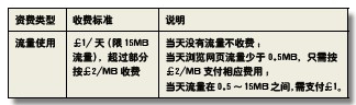表2Vodafone英國(guó)數(shù)據(jù)流量按天計(jì)費(fèi)