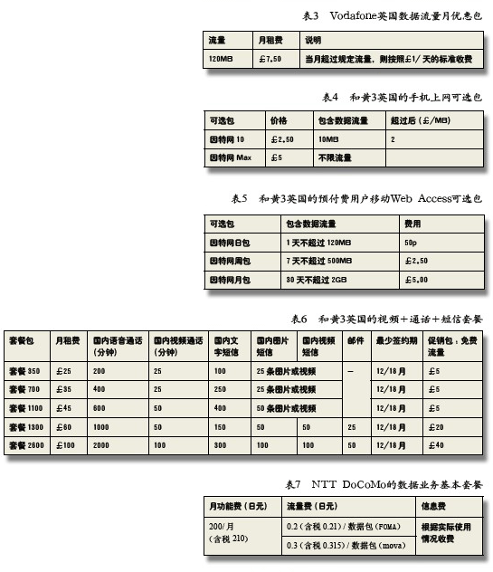 國(guó)外運(yùn)營(yíng)商 移動(dòng)數(shù)據(jù)業(yè)務(wù)資費(fèi)策略