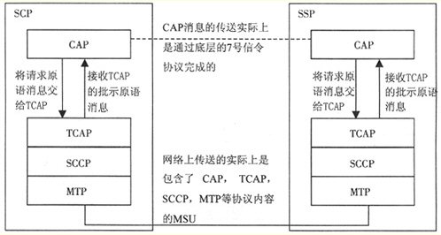 移動智能網(wǎng)應(yīng)用部分(CAP)是遠程操作服務(wù)單元(ROSE),ROSE規(guī)程包括在TCAP成份子層中,并作為單位數(shù)據(jù)(UDT)放在SCCP中傳送。我國CAP是建立在以TCAP和SCCP為基礎(chǔ)的No.7信令網(wǎng)傳送的,CAP受限于SSP-SCP、SCP-IP之間的接口規(guī)范。