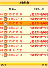 收發(fā)記錄里面詳細的記錄了所發(fā)生和接收的閃信的。選中一條信息,按中建就可以方便的查看這天信息的內(nèi)容(動畫、文字信息、時間一目了然)。選擇左軟鍵里面的選項可以快捷方便的進行“回復(fù)、轉(zhuǎn)發(fā)、刪除”等操作。