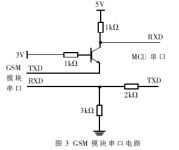 (2)串行接口電路的設(shè)計。GSM模塊的串行口(UART)使用的不是標(biāo)準(zhǔn)的TTL電平,不能與控制它的MCU串口直接相連,在它們之間要有一個電平轉(zhuǎn)換接口電路。該電路要能實(shí)現(xiàn)模塊的3V高電平與
