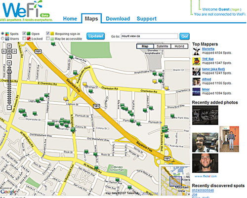 WeFi網(wǎng)站上的熱點地圖