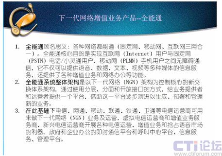 何謂CTI?有許多人都是非常片面的理解,在呼叫中心市場(chǎng)把CTI行業(yè)帶到最紅火的第二次高潮時(shí)許多人都以為CTI就是呼叫中心、呼叫中心就是CTI;2002年當(dāng)呼叫中心市場(chǎng)開始出現(xiàn)萎縮時(shí),許多大公司紛紛把CTI裁剪,還有許多公司倒閉時(shí),剩下的公司日子很難過時(shí),許多人認(rèn)為CTI完了、紛紛轉(zhuǎn)行。我在2003年1月6日‘中國(guó)計(jì)算機(jī)報(bào)社舉辦了2003年CTI和呼叫中心研討會(huì)’時(shí)講過:呼叫中心市場(chǎng)很冷,但CTI市場(chǎng)不冷,CTI行業(yè)又要開復(fù)蘇,因?yàn)槲彝ㄟ^一年多的增值業(yè)務(wù)的摸索,認(rèn)為增值業(yè)務(wù)將重新帶動(dòng)CTI行業(yè)第三次高潮,關(guān)鍵在于增值業(yè)務(wù)的創(chuàng)新應(yīng)用。隨后的幾年里增值業(yè)務(wù)把CTI行業(yè)帶到一個(gè)新的高度,許多人又認(rèn)為CTI就是IVR,就是增值業(yè)務(wù);但到了07年增值業(yè)務(wù)市場(chǎng)嚴(yán)重萎縮,大家又以為CTI不行了、紛紛轉(zhuǎn)行和離開。
