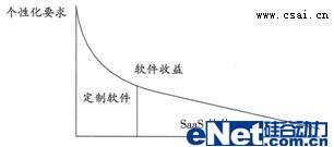 SaaS模式就是不論是什么樣的客戶都向其提供服務(wù),不論服務(wù)的時間長短,不論身處何地。傳統(tǒng)軟件是很難適應(yīng)普通客戶的,普通客戶付不出更多的投資,也不想軟件、硬件、服務(wù)都全面去投資,這樣就只有放棄使用軟件了。自然,軟件市場就少了一大群消費(fèi)者。而SaaS模式將不細(xì)分客戶類型,讓人人都可使用軟件,讓個個都消費(fèi)得起軟件?上攵,這是一個怎么龐大的市場。如下圖所示: