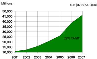 如今的全球化經(jīng)濟(jì)正在促使企業(yè)打破同事、合作伙伴、供應(yīng)商和客戶之間的地域界限。在許多情況下,面對(duì)面的溝通協(xié)作既花費(fèi)昂貴又不合時(shí)宜,這推動(dòng)企業(yè)開始轉(zhuǎn)向召開語音會(huì)議。對(duì)語音會(huì)議需求的復(fù)合年增長率(CAGR)已達(dá)到28%,每年的通話時(shí)間很快將超過500億分鐘,如圖1所示。