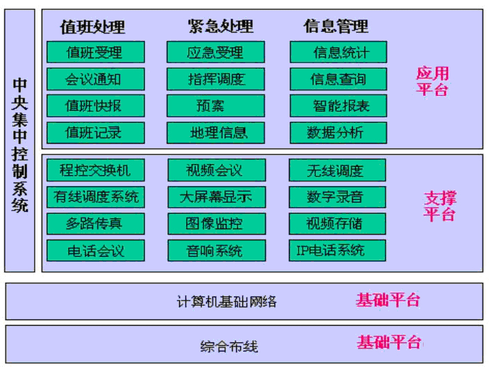 首信應(yīng)急指揮系統(tǒng)由指揮調(diào)度、監(jiān)控、信息綜合系統(tǒng)和基礎(chǔ)設(shè)施保障系統(tǒng)組成,具有指揮調(diào)度、監(jiān)控和信息綜合等功能。