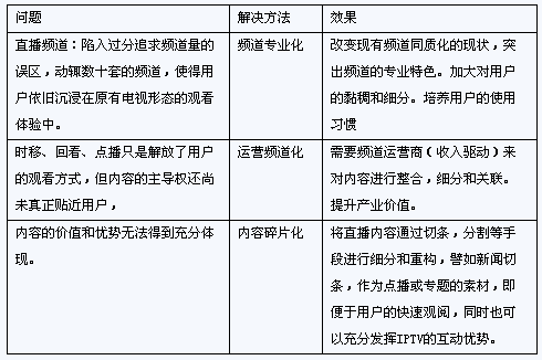 IPTV發(fā)展中,傳統(tǒng)視頻業(yè)務(wù)既是切入點,同時也是業(yè)務(wù)收入的重要來源。但目前視頻業(yè)務(wù)的價值還未得到充分體現(xiàn)。互動性優(yōu)勢還未得到充分挖掘。