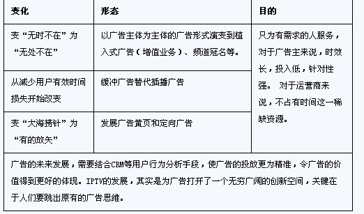 增值業(yè)務(wù)將是IPTV的重要組成和未來發(fā)展重心。但從這幾年的發(fā)展來看,增值業(yè)務(wù)還有較長的路要走。還有很多問題需要在發(fā)展中不斷調(diào)整。