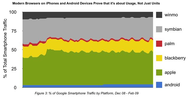 這里有個(gè)例子:iPhone、Android手機(jī)雖然僅占到智能手機(jī)市場(chǎng)份額的13%,卻貢獻(xiàn)了50%的智能手機(jī)Google搜索流量(Google訪(fǎng)問(wèn))。