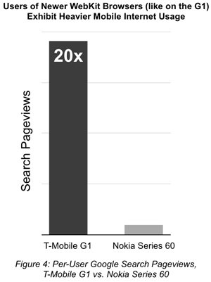 還有個(gè)例子:T-Mobile G1的用戶(hù)使用Google的頻率是諾基亞S60系列用戶(hù)的20倍。