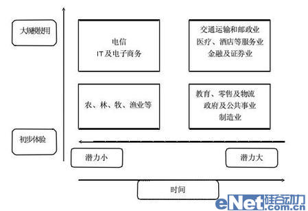 象限4--代表位于該象限的行業(yè)已經(jīng)開始大規(guī)模使用通信產(chǎn)品,同時還有很大的市場潛力,該類行業(yè)對通信要求很大,我們預測供應商在此領(lǐng)域會將得到很大的利潤