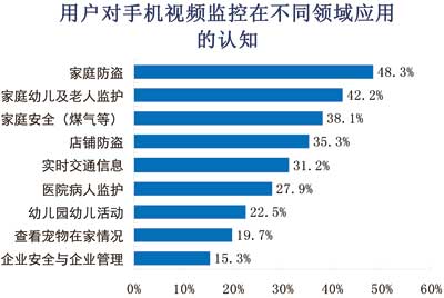 圖1用戶對手機視頻監(jiān)控應(yīng)用于不同領(lǐng)域的認知